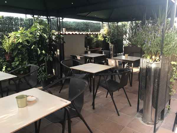 En cuanto a la distribución física del espacio, el local se organiza en varias áreas. En la entrada, junto a la barra, se encuentra un primer sector con seis mesas bajas. Continuando hacia el interior, hay un comedor con una capacidad aproximada para treinta comensales. Este comedor está disponible para ser reservado con el fin de acoger eventos o celebraciones de diversa índole. Complementando el espacio interior, el establecimiento cuenta con una terraza exterior dotada con ocho mesas.