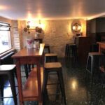Junto a la barra un espacio decorado en piedra y madera, con mesas altas y muy acogedor, hacen del lugar, el punto de encuentro elegido por muchos vecinos y comerciantes de la zona.