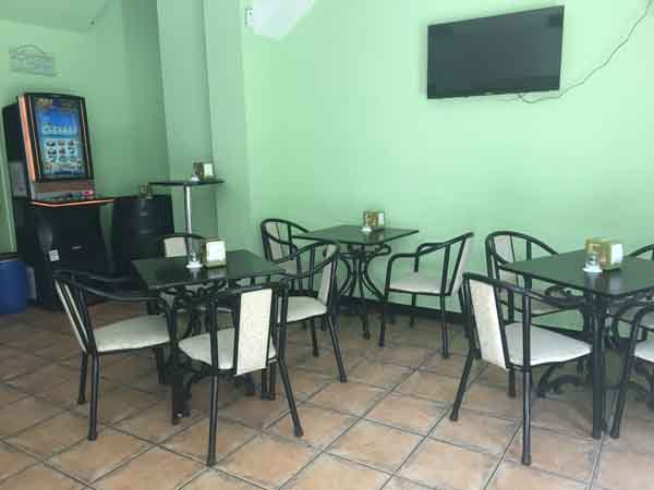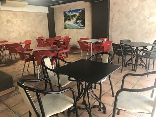 La distribución física del local comprende dos áreas diferenciadas. En la planta baja, junto a la barra principal, hay un espacio con tres mesas disponibles para los clientes. En la primera planta se ubica un salón independiente. Este salón tiene una capacidad aproximada para albergar a sesenta personas.