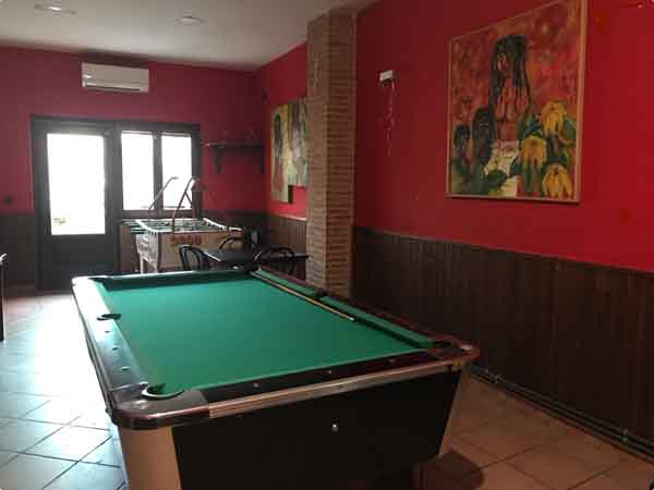 La distribución interior del BAR EL TOCA está dividida en varias áreas. En la entrada principal se localiza una barra diseñada para el servicio de barras y el tapeo. A continuación, un espacio interior dispone de siete mesas bajas para el servicio de mesa. El establecimiento también cuenta con una sala anexa dedicada a juegos, equipada con una mesa de billar y un futbolín.