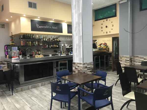 El local presenta una distribución interior dividida en dos áreas principales. Al acceder al establecimiento, se encuentra una barra de servicio de dimensiones amplias. Esta barra está destinada al servicio de bebidas y a la disposición de una selección de tapas. Tras esta zona, el local cuenta con un espacio reservado para el consumo sentado, equipado con cinco mesas bajas. La disposición del mobiliario permite la circulación entre la barra y la zona de mesas.