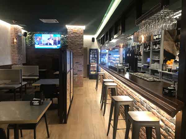 El espacio físico del local se distribuye en dos áreas principales. En la zona de entrada se encuentra una barra amplia, desde la que se sirve un servicio de tapeo. Esta área está conectada con un comedor independiente. El comedor tiene una capacidad aproximada para 30 personas sentadas. El establecimiento indica que en este comedor es posible realizar reservas para eventos o celebraciones, como comidas o cenas en grupo.