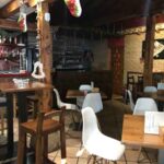 El local cuenta con un espacio con mesas bajas y altas en un entorno que combina la madera y el ladrillo a la perfección.