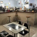 La barra funcional y con 5 mesas bajas forman parte del mobiliario de este bar que son parte de la vida diaria de la localidad.