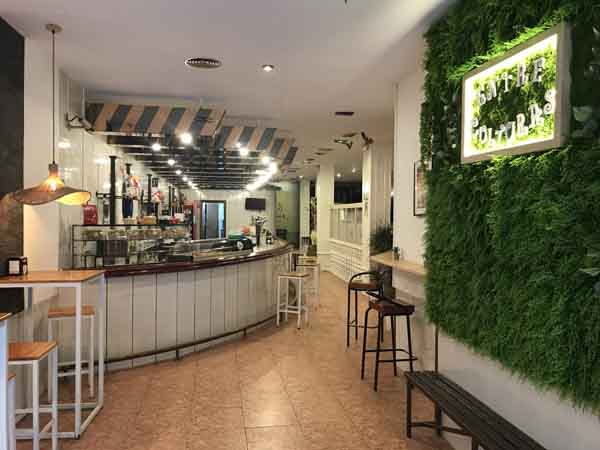 La distribución física del local se compone de varias áreas. Cuenta con una barra de servicio de dimensiones amplias. Adyacente a la barra, hay un comedor con una capacidad aproximada para cincuenta personas. Este espacio está disponible para reservas, las cuales pueden gestionarse para la celebración de eventos. Complementando el espacio interior, el establecimiento posee una terraza de verano. En esta terraza se han dispuesto once mesas para su uso durante los meses de verano.