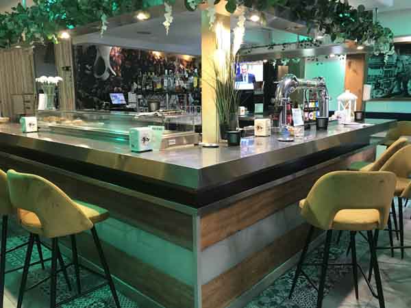 El local dispone de una distribución que incluye dos áreas diferenciadas. En la entrada, junto a la barra, se ubica un espacio con siete mesas bajas. Hacia el interior, el restaurante cuenta con un comedor independiente. Este comedor tiene una capacidad aproximada para 30 comensales. Esta disposición permite atender a clientes que buscan una consumición rápida en la barra, así como a grupos que requieren de un servicio en mesa. El ambiente general del local se define como funcional y acogedor.