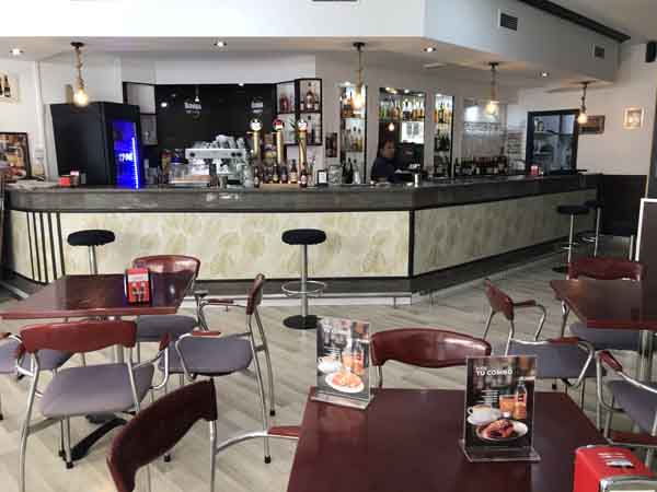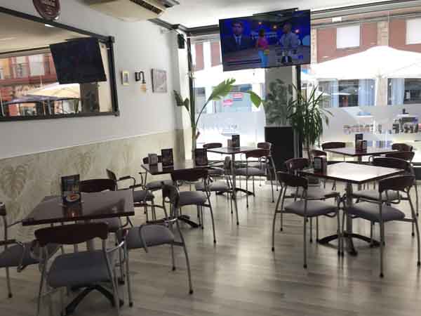 El establecimiento se caracteriza por sus dimensiones amplias. La distribución interior cuenta con un espacio principal donde se disponen cinco mesas bajas y dos mesas altas. Adicionalmente, el local ofrece una terraza exterior equipada con diez mesas. La disposición del mobiliario está orientada a la funcionalidad.