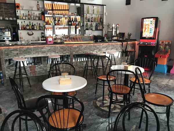 La distribución física del local se organiza en varias áreas. La planta principal cuenta con una barra de servicio. Adyacente a la barra, se dispone un espacio con cinco mesas bajas. Este espacio está destinado al consumo dentro del establecimiento. En la primera planta, existe una sala de juegos. Esta sala tiene una función que permite su utilización para celebraciones, como cumpleaños, u otro tipo de eventos que requieren un espacio delimitado. Al exterior, el establecimiento incorpora una terraza. En esta terraza se han colocado tres mesas para su uso durante las condiciones meteorológicas apropiadas.