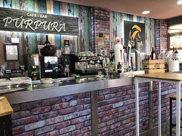 El Café Bar Purpura, dispone de una barra con tapas y raciones, rodeada de 2 mesas bajas y 4 altas, donde poder estar de una manera más cómoda e intima disfrutando de cualquiera de sus especialidades.