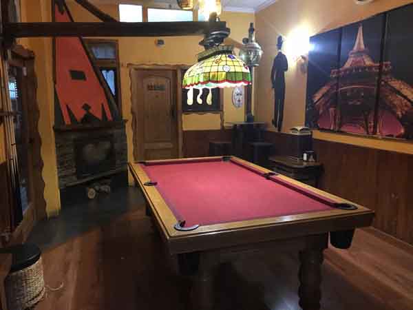 El ambiente del local se caracteriza por ser funcional y acogedor. La disposición de las diferentes áreas —barra, zona de sofás, espacio con billar, patio y terraza— permite atender a diversas preferencias de los clientes, ya sea para una consumición rápida, una reunión informal o un momento de ocio. La decoración y el mobiliario responden a una utilidad práctica, contribuyendo a un entorno distendido.