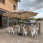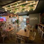 En el exterior y para los días en los que la climatología lo permita, Lapera ofrece dos espacios diferenciados con terraza, uno en zona ajardinada y otro a la entrada del local, con un total de 16 mesas bajas.