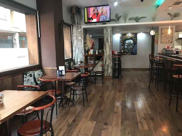 El espacio interior está distribuido en dos áreas principales. En la zona de entrada se encuentra una barra de dimensiones amplias. En este espacio se sirven tapas y se puede consumir de pie. A continuación, se accede a un comedor con una capacidad estimada para 25 personas. Este comedor está disponible para el servicio habitual de comidas y cenas, y también se puede reservar para la celebración de eventos privados o reuniones.