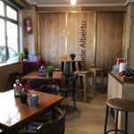 Tenemos un espacio con 4 mesas bajas y 1 alta, integradas dentro del propio espacio de la barra, para poder estar de una manera mas cómoda e intima disfrutando de cualquiera de nuestras especialidades.