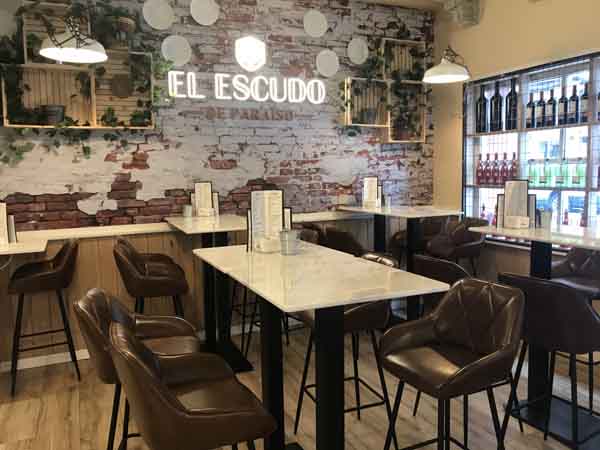 Entre las especialidades del establecimiento se encuentran los productos ibéricos. Esta categoría incluye una variedad de embutidos y piezas de carne procedentes del cerdo ibérico, que se preparan y sirven conforme a los métodos tradicionales de corte y curación. Otra especialidad destacada son los pinchos del Escudo. Estas preparaciones consisten en pequeñas raciones de comida que se presentan sobre una base de pan, sujetas con un palillo, y que incorporan diferentes combinaciones de ingredientes. Estas dos especialidades constituyen una parte significativa de la oferta disponible.