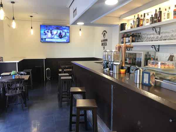 La actividad del local se desarrolla en un espacio que presenta una distribución dividida en varias áreas. En el interior, existe una barra de atención al público. Junto a la consumición de bebidas, en esta barra se sirve tapeo. Adicionalmente, la zona interior cuenta con tres mesas bajas para clientes. En el exterior, el local dispone de una terraza que está equipada con quince mesas.