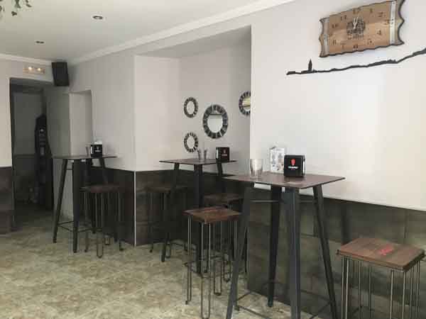 La distribución física del local comprende dos áreas diferenciadas. En el interior, existe un espacio que contiene cuatro mesas altas. Adicionalmente, el establecimiento cuenta con una terraza de verano. Esta terraza exterior está equipada con doce mesas, las cuales se disponen para su uso durante los meses de temperatura más favorable.
