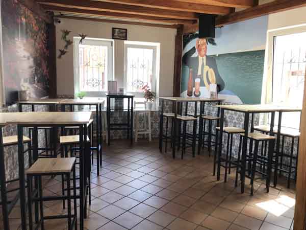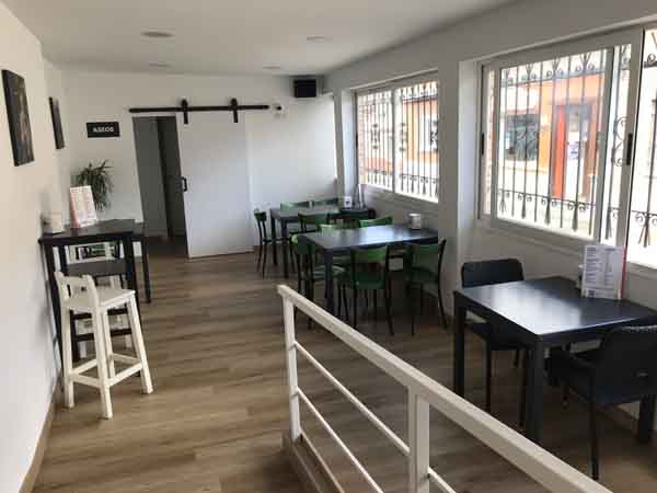 El ambiente del local se define como acogedor y funcional. El espacio está distribuido en varias áreas diferenciadas. Al acceder al establecimiento, se encuentra una zona de barra. Adyacente a esta barra, hay dispuestas diez mesas altas. Además, el local cuenta con un comedor interior independiente. Este comedor tiene una capacidad estimada para veinte comensales y está disponible para ser reservado. Esta reserva está dirigida a grupos que deseen celebrar eventos o reuniones privadas. Complementando el espacio interior, el establecimiento dispone de una terraza exterior. En esta terraza se han ubicado nueve mesas para su uso durante los periodos de condiciones meteorológicas favorables.