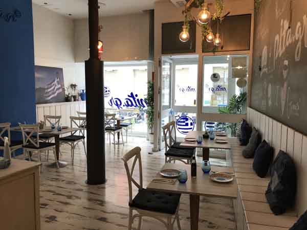 El establecimiento cuenta con un comedor con capacidad para 60 personas aprox., ambientado en el País heleno, bien iluminado y con vistas a la calle, donde disfrutar de una excelente cocina casera, elaborada de manera tradicional, utilizando productos de proximidad y materias primas de primera calidad.