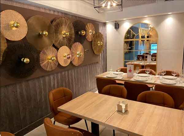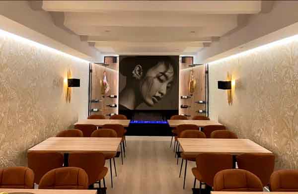 El local tiene una distribución que se organiza en varios espacios. En la planta de calle, hay un comedor con una capacidad aproximada para cincuenta personas. En la planta baja, existe un segundo comedor con capacidad para alrededor de treinta personas. Este espacio de la planta baja ofrece la posibilidad de ser reservado para la celebración de eventos. Adicionalmente, el restaurante dispone de una terraza en el exterior, la cual está equipada con dieciséis mesas.