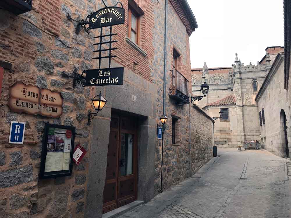 El restaurante las Cancelas, es un establecimiento ubicado en la calle Cruz Vieja, justo al lado de la Catedral de Ávila, es un local típico de cocina española, con platos típicos de toda la vida, con una decoración rústica, tradicional y muy bien climatizado, con un trato personalizado y profesional, donde poder encontrar unas buenas tapas y raciones, destacando la calidad de la materia prima, en todos sus platos, consiguiendo con ello un acabado sano y sabroso.