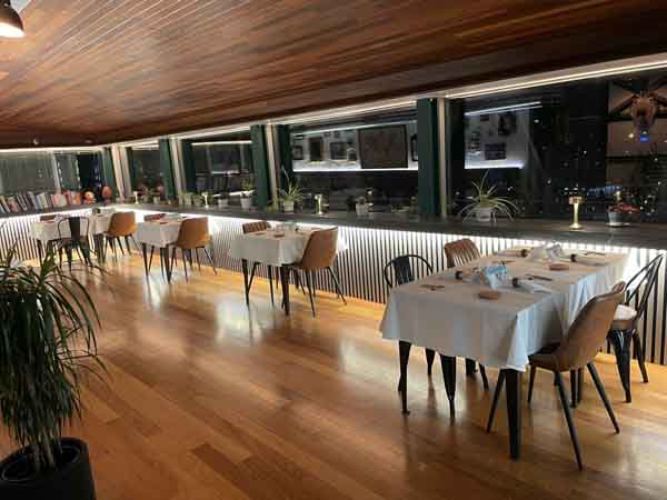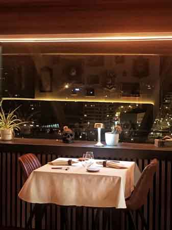 La atmósfera del comedor en la décima planta se describe como acogedora y funcional. La distribución del mobiliario y la disposición de los elementos buscan facilitar el servicio y la estancia de los comensales. Las vistas desde dicha planta abarcan una perspectiva elevada del entorno.