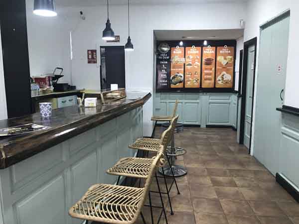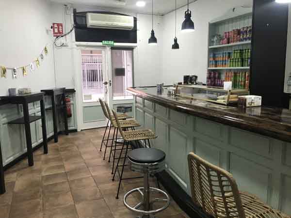 La distribución física del local incluye una barra. Esta barra tiene una doble función. Por un lado, es el punto donde se formalizan los pedidos. Por otro, dispone de espacio para que los clientes puedan consumir sus pedidos in situ, si así lo desean, sin necesidad de ocupar una mesa. Este diseño contribuye a la funcionalidad del espacio, permitiendo diferentes dinámicas de consumo.